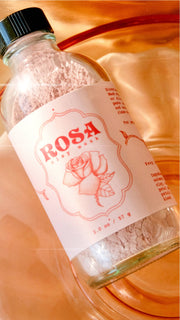- Mix 1 teaspoon of the ROSA Clay Mask powder with a few drops of water or your elixir of choice to create a smooth and creamy paste.